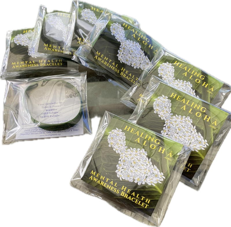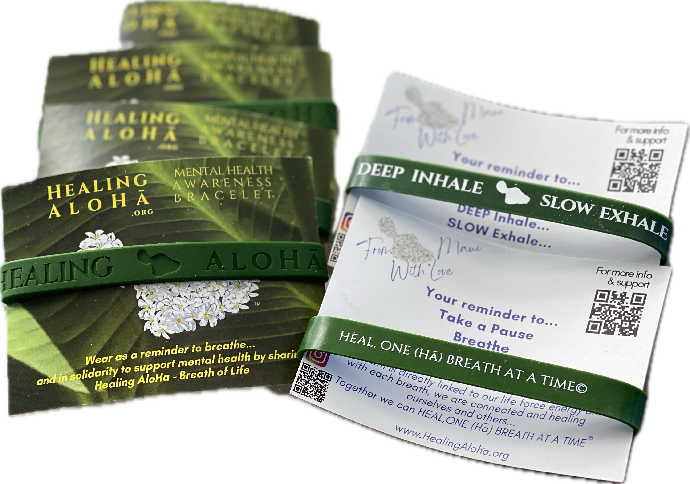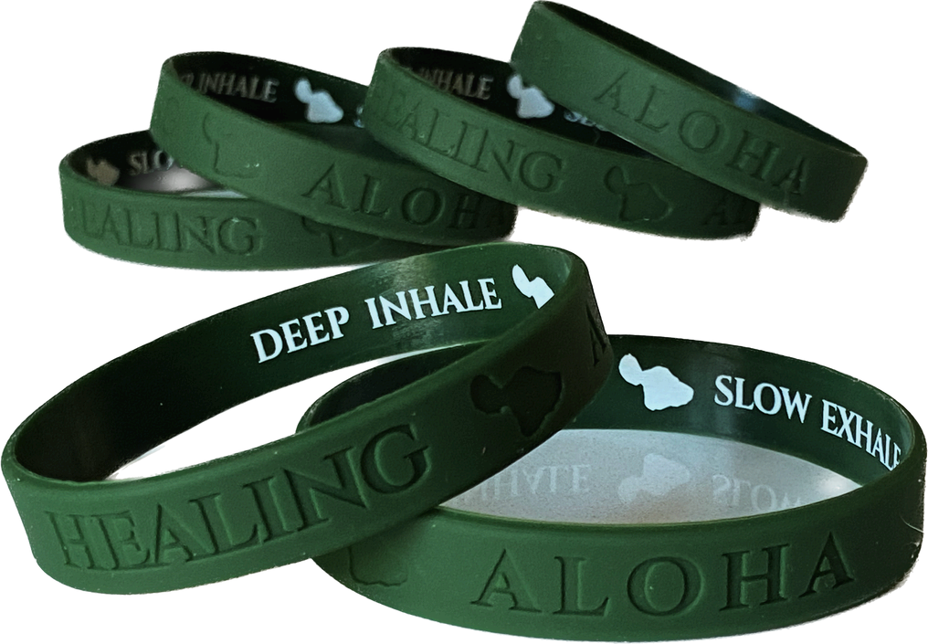 Bracelets were first conceived by a group of Lāhainā healers following the August 8th, 2023 Maui wildfires. Now with other products available, all serve as self-care reminders and a coping tools — not merely from day to day, but breath by breath.